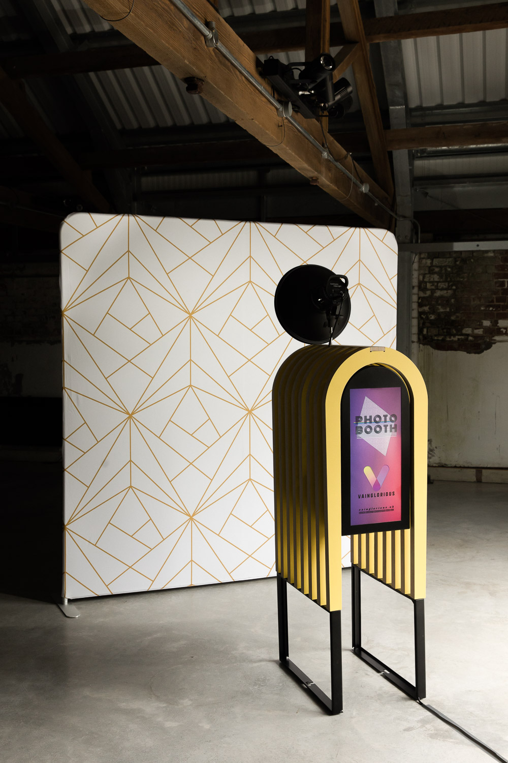 Our glorious, laminated birch ply Vainglorious photo booth.